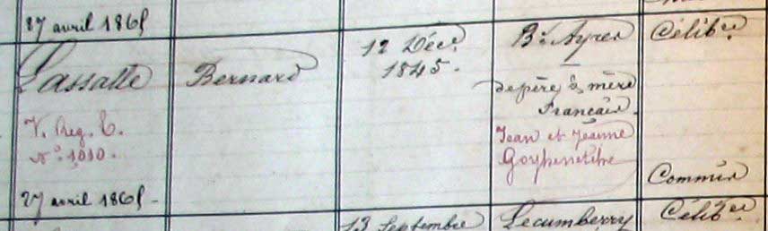 - Bernardo Lassalle Goyenetche né en 1845 ;